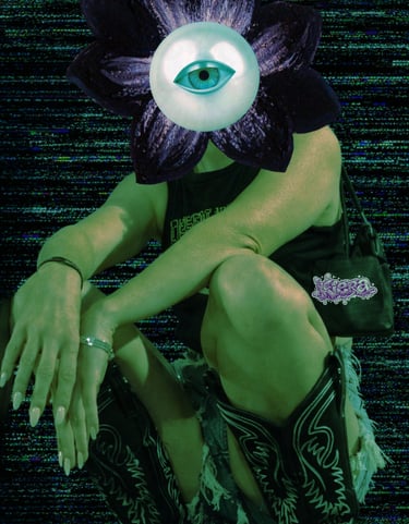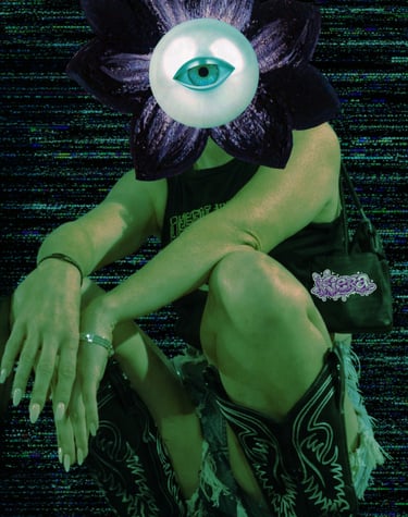 My work is an invitation to feel everything.. the slippery, the sacred, the surreal. I embrace the messy magic of life and let it speak, transforming pain into portals and curiosity into creation, where symbolism meets sensuality, spirit meets circuitry, and the organic fuses with the digital and mechanical.